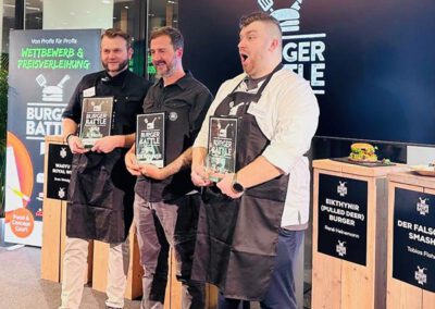Bei der Burger Battle standen sechs Finalisten im Finale – sechs Charaktere, sechs völlig individuelle kulinarische Kreationen. Jeder einzelne Burger hatte seine eigene Handschrift, seine eigene Idee und seinen eigenen Moment.