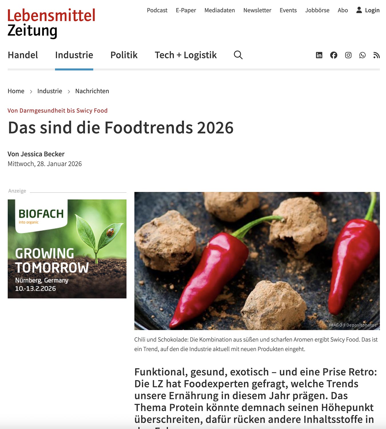 Lebensmittelzeitung, 28.01.2026 – Artikel / Interview von Jessica Becker